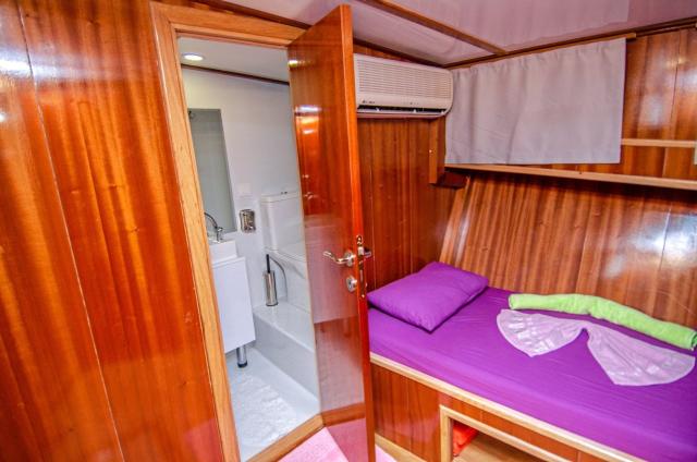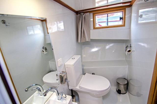 každá kajuta s koupelnou (sprcha, umyvadlo, WC; teplá voda),