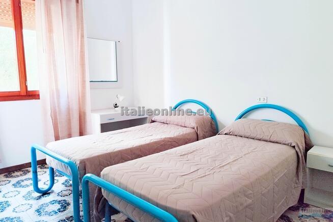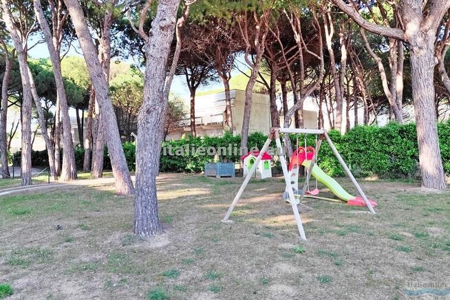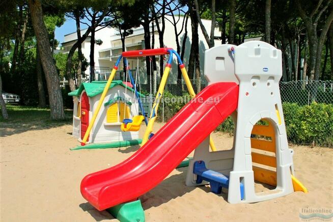 obklopena borovicovým lesíkem. Klientům je k dispozici výtah, prádelna, zahrada, dětské hřiště na pláži a soukromé parkoviště. Na vyžádání možnost Wi-Fi (za poplatek 35€/týden, v případě zájmu nutno objednat již při rezervaci, max. 15-20 GB, nelze download/streaming). Apartmány jsou vybaveny kuchyňským koutem, sociálním zařízením, klimatizací, TV, trezorem a balkonem. V ceně je plážový servis (slunečník a 2 lehátka/apartmán). Pobyt s malým psem je povolen na vyžádání a za poplatek 35 €/týden. Fotky apartmánů jsou ilustrační. |