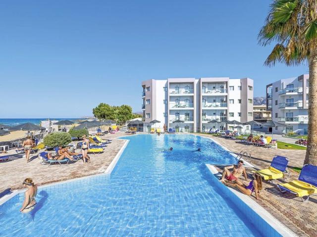 | Moderní hotelový komplex leží přímo u písečné pláže v letovisku Malia. Centrum tohoto letoviska, kde se nachází množství barů, restaurací, obchodů a kaváren, je vzdáleno cca 2 km. Z letiště Heraklion do hotelu je to cca 35 km. |