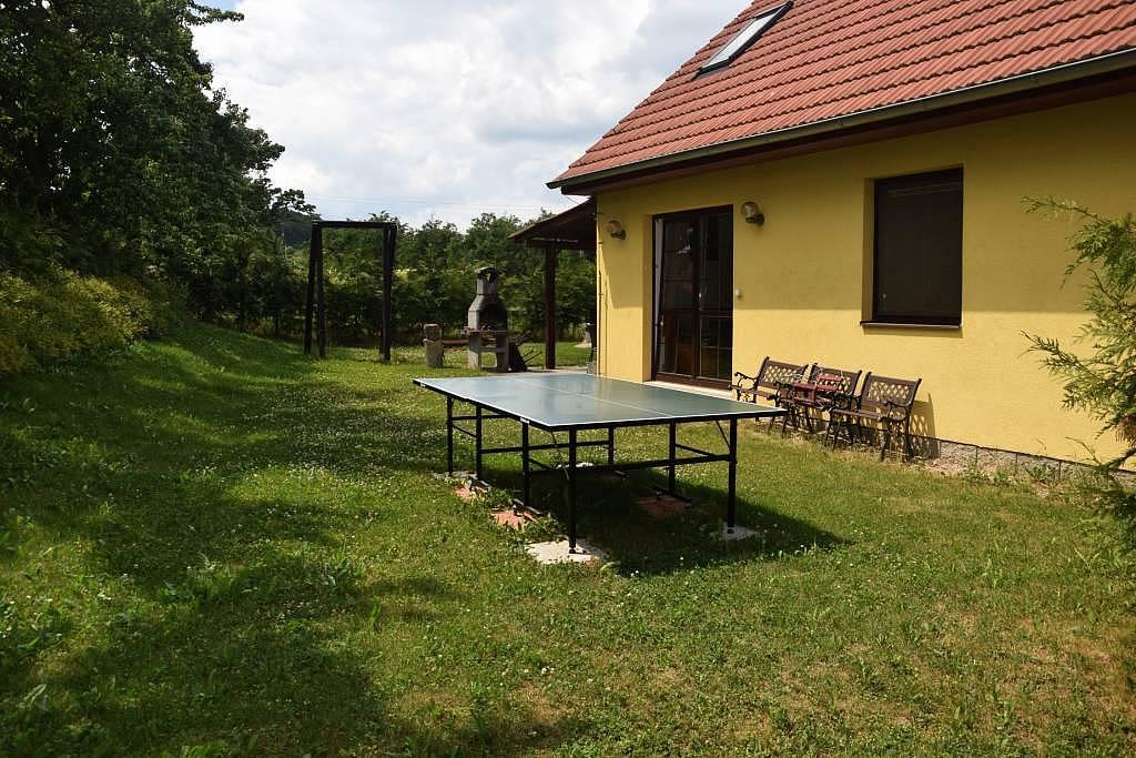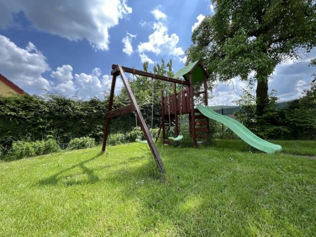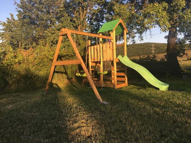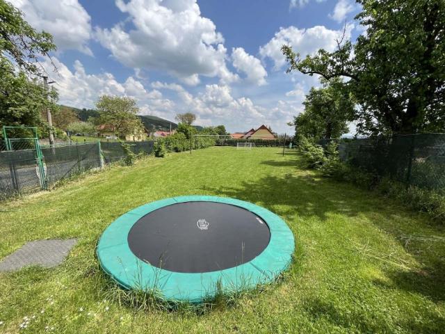 | zahradní nábytek kovový, houpačka dětská, pískoviště, stolní tenis, krbová kamna (obývací pokoj), gril zahradní, posezení pod pergolou, trampolína (zabudovaná do země), uzamykatelný prostor pro kola, dětská židlička ano, krb zahradní |