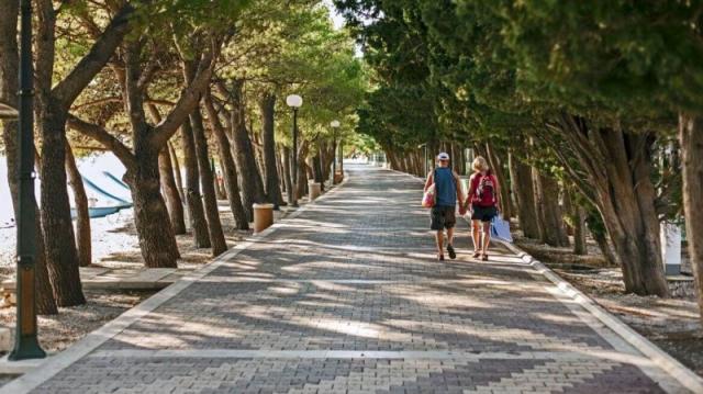 | Pobyty ve vile Marin jsou výhodné pro hosty všech věkových kategorií díky bezproblémovému přístupu k moři - téměř po rovině. Vila stojí v klidné části letoviska Tučepi obklopena olivovým hájem. V blízkosti jsou obchůdky, taverny a restaurace. Pláž je lemovaná borovicemi s menšími oblázky, přecházející v písek s pozvolným vstupem do moře. Vila je od pláže vzdálena cca 200 metrů. Celková délka pláží je přes 3 km a patří k nejdelším na Makarské riviéře. Tučepi se považuje za jedno z nejhezčích letních letovisek v Dalmácii. Uchvacuje rozlehlými plážemi a křišťálově čistou vodou. |