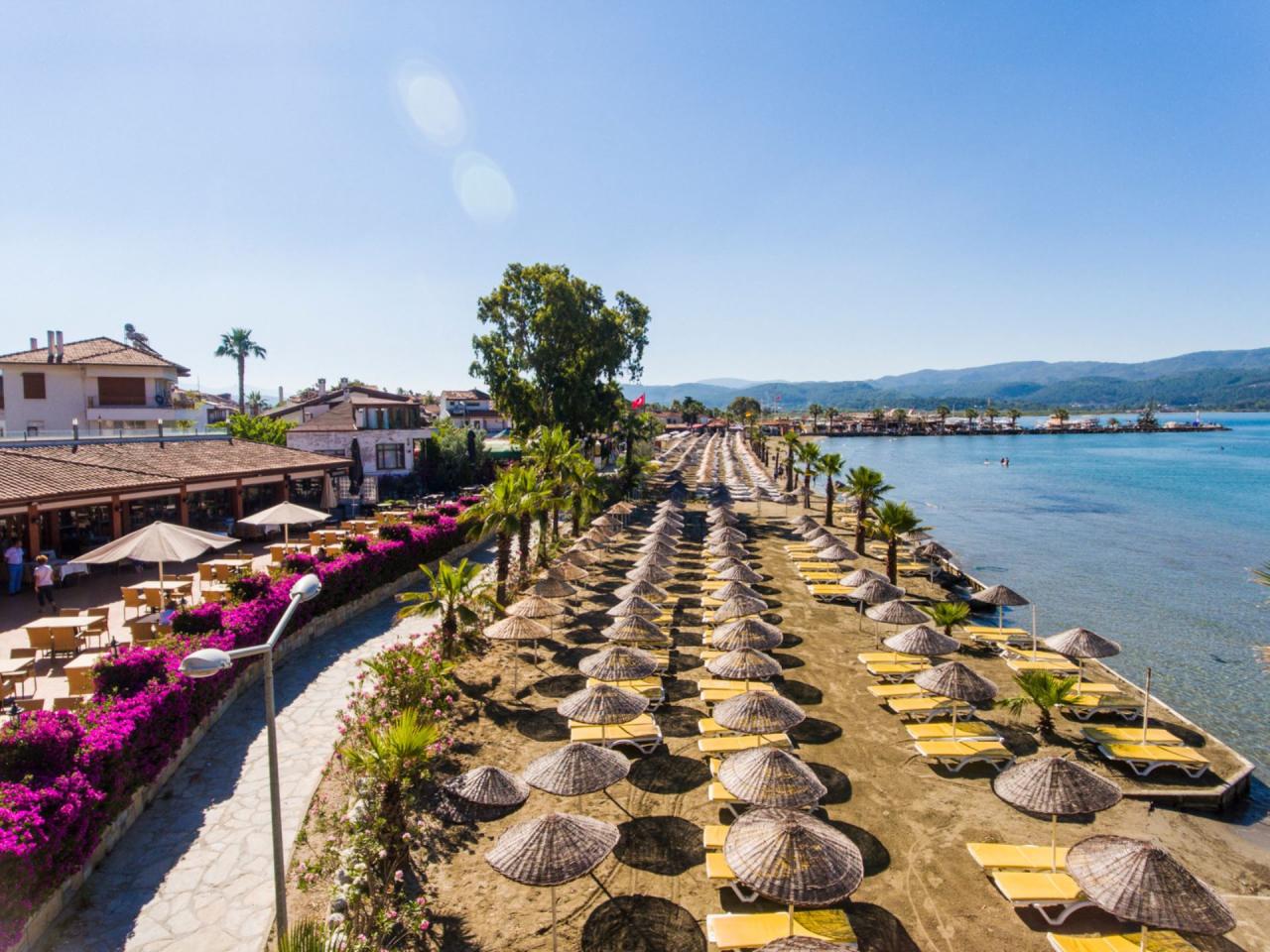 Hotel Yücelen je rodinný hotel v tradičním stylu, který se nachází velmi blízko pláže. V okolí se nachází jedno z měst zapsaných na seznamu Citta Slow, tedy měst bez spěchu - Akyaka. Další atrakcí tohoto místa je krásná zahrada, ve které se nachází pramen s potokem plným ryb a želv. Z terasy restaurace můžete při chutném jídle obdivovat nádherné výhledy a díky zajímavé nabídce atrakcí pro děti se nejmenší hosté nebudou nudit. Milovníci aktivní dovolené mohou využít bohatou nabídku vodních sportů na pláži. |